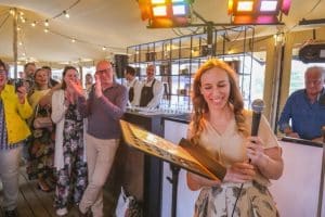 Een bijzonder hoogtepunt was de openingsspeech van Karl en Tina, waarin zij hun dankbaarheid uitten voor de vele aanwezigen en voor de steun die zij elkaar in de afgelopen jaren hebben gegeven.